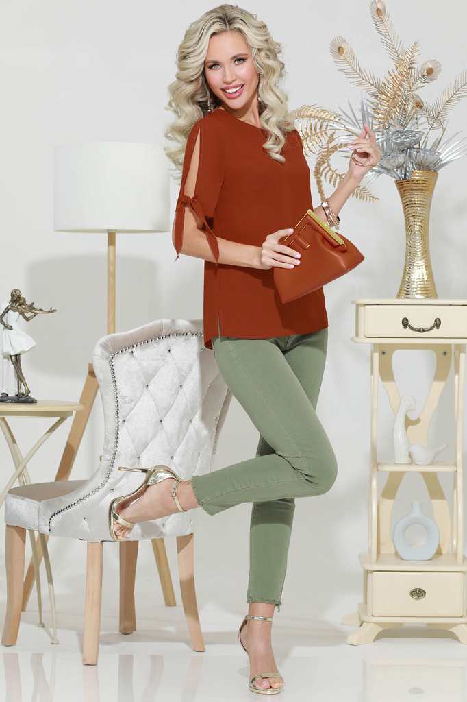 Легкая элегантная блузка из крепа для ваших летних образов. Свободный крой позволяет носить ее навыпуск и заправленной, сочетать с брюками и юбками. «Изюминка» блузки - короткий рукав с разрезом и зав... Показать описаниеязками, которые не только позволят регулировать его ширину по вашей руке, но и сделают ваш повседневный образ более нарядным. Обмеры изделия Длина: 44 размер - 64 см 46 размер - 65 см 48 размер - 66 см 50 размер - 67 см 52 размер - 68 см 54 размер - 69 см 56 размер - 70 см Уход Бережная стирка при 30 градусах Дополнение Цвет изделия на фотографии может отличаться от фактического товара, что связано с искажением цветопередачи монитором, настройками фотоаппаратуры и прочими факторами