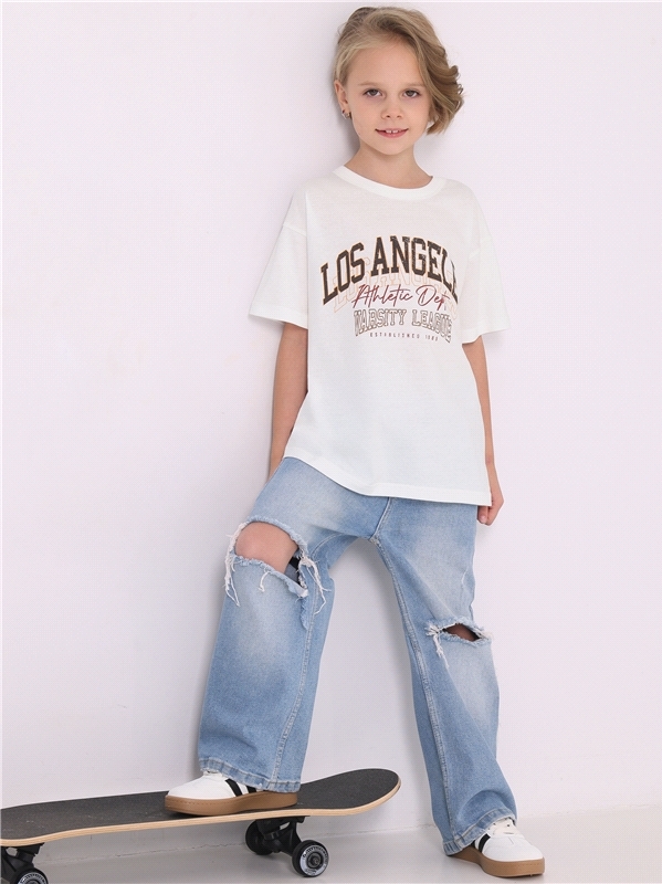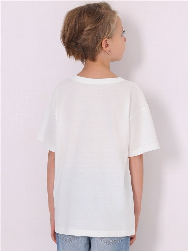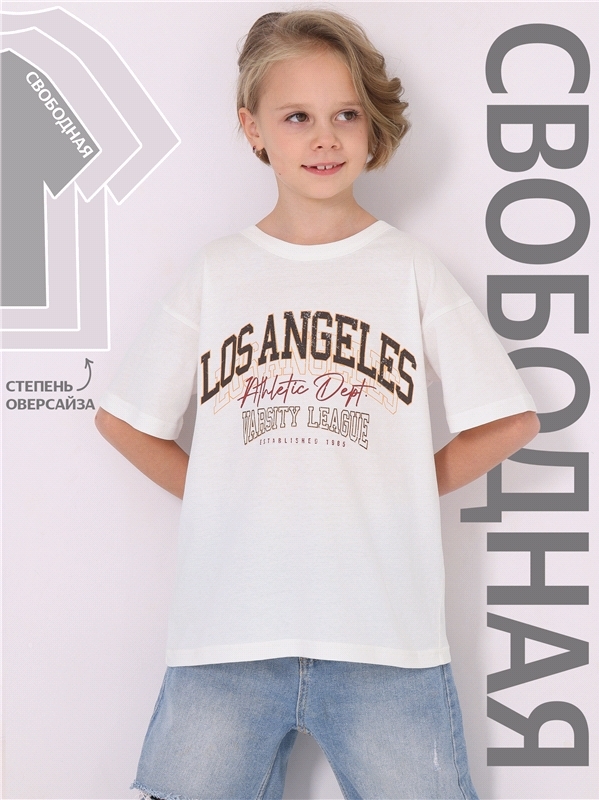 Футболка для девочки из кулира - легкого хлопкового полотна. Изделие с короткими рукавами со спущенным плечом, украшено стильным принтом. Отличный выбор для юной модницы! Уход: только машинная стирка ... Показать описание(руками не стирать!) при температуре 40 градусов, без предварительного замачивания. Изделия с печатью и декором перед стиркой необходимо вывернуть на изнаночную сторону. Состав: кулир / хлопок 100%.