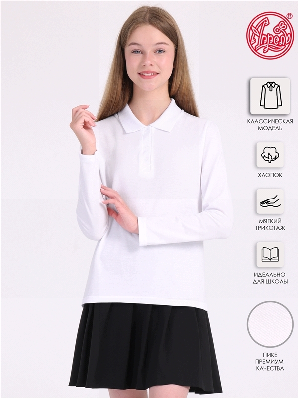 Лонгслив-поло для девочки выполнен из хлопкового полотна. Изделие с длинными рукавами со сборкой по плечикам и с застежкой на кнопки. Отличный вариант для школы! Уход: только машинная стирка (руками н... Показать описаниее стирать!) при температуре 40 градусов, без предварительного замачивания. Состав: пике / хлопок 100%.