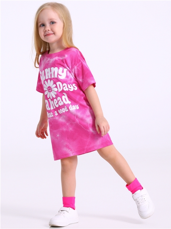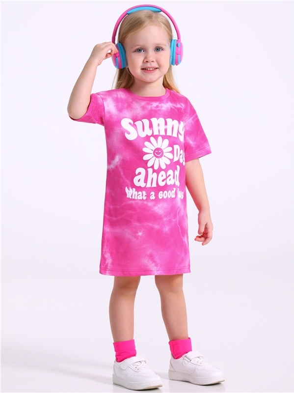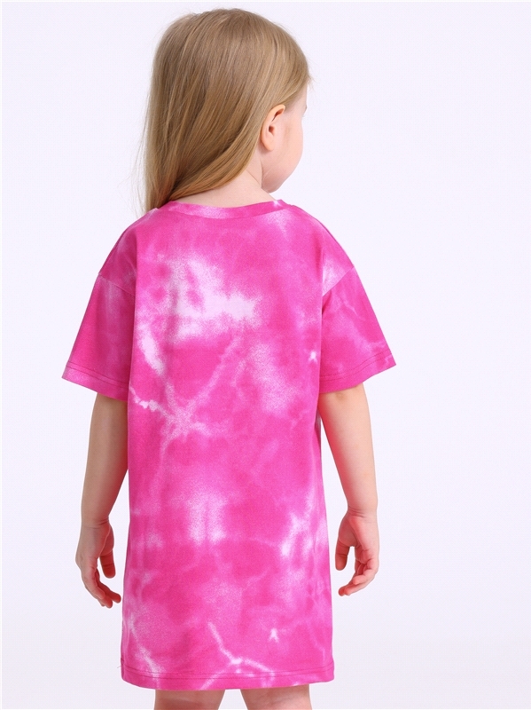 Платье Oversize из кулира - легкого хлопкового полотна. Изделие с короткими рукавами со спущенным плечом с отворотами, украшено ярким принтом. Отличный выбор для летнего жаркого дня! Уход: только маши... Показать описаниенная стирка (руками не стирать!) при температуре 40 градусов, без предварительного замачивания. Изделия с печатью и декором перед стиркой необходимо вывернуть на изнаночную сторону. Состав: кулир / хлопок 100%.