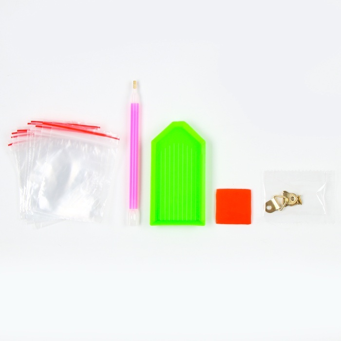 Алмазная мозаика — это отличный способ провести вечер в творческой атмосфере. Готовое изделие украсит интерьер или станет оригинальным подарком. Как работать с мозаикой 1. Для начала откройте небольшо... Показать описанией участок схемы, приподняв и отогнув защитную плёнку. Не открывайте всю схему сразу. 2. Из пакетика с номером, который соответствует схеме, отсыпьте в ёмкость немного стразов. 3. Возьмите специальный карандаш, окуните кончик в клеевую подушечку (розовый квадратик), возьмите страз. Таким образом заполните рисунок. Комплектация * картонная основа-картина; * 5 основ-стикеров; * 2 основы-магнита; * 2 основы-брелока; * стразы; * клеевая подушечка; * поддон для стразов; * специальный карандаш. * карабин; * мальберт;