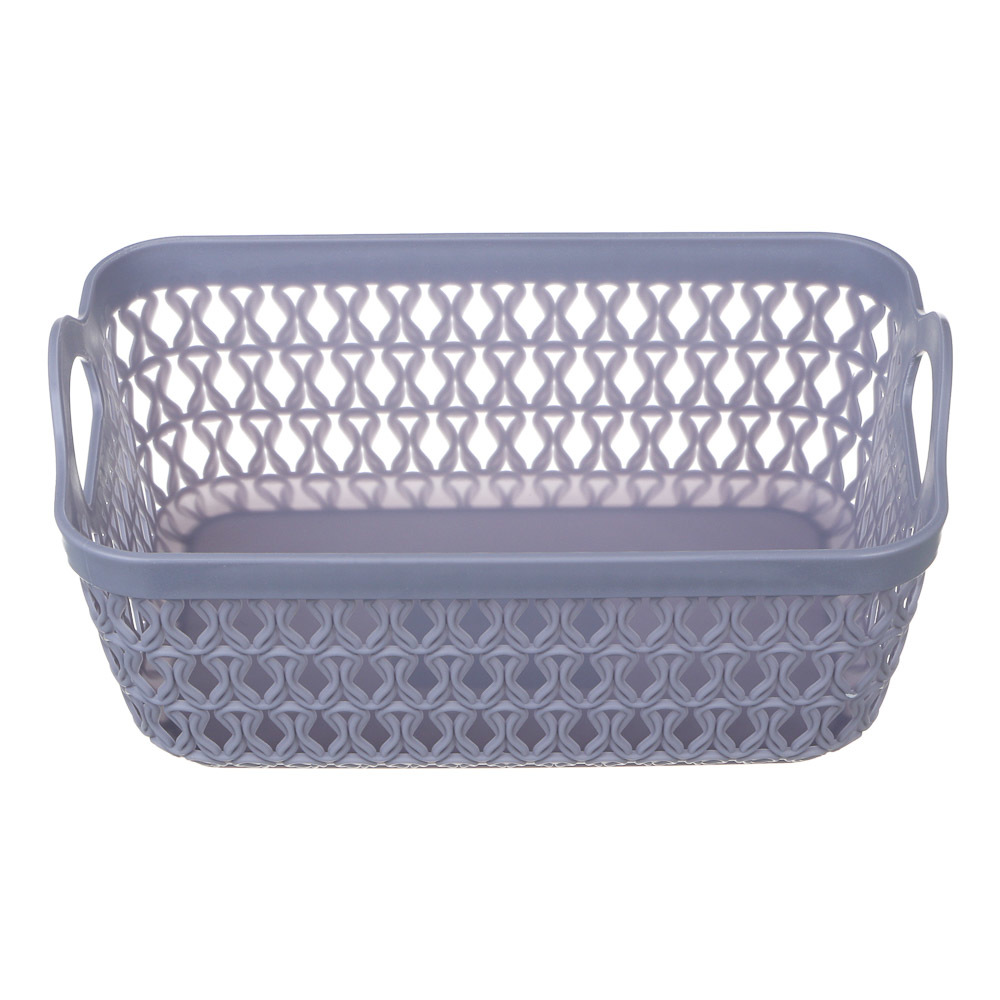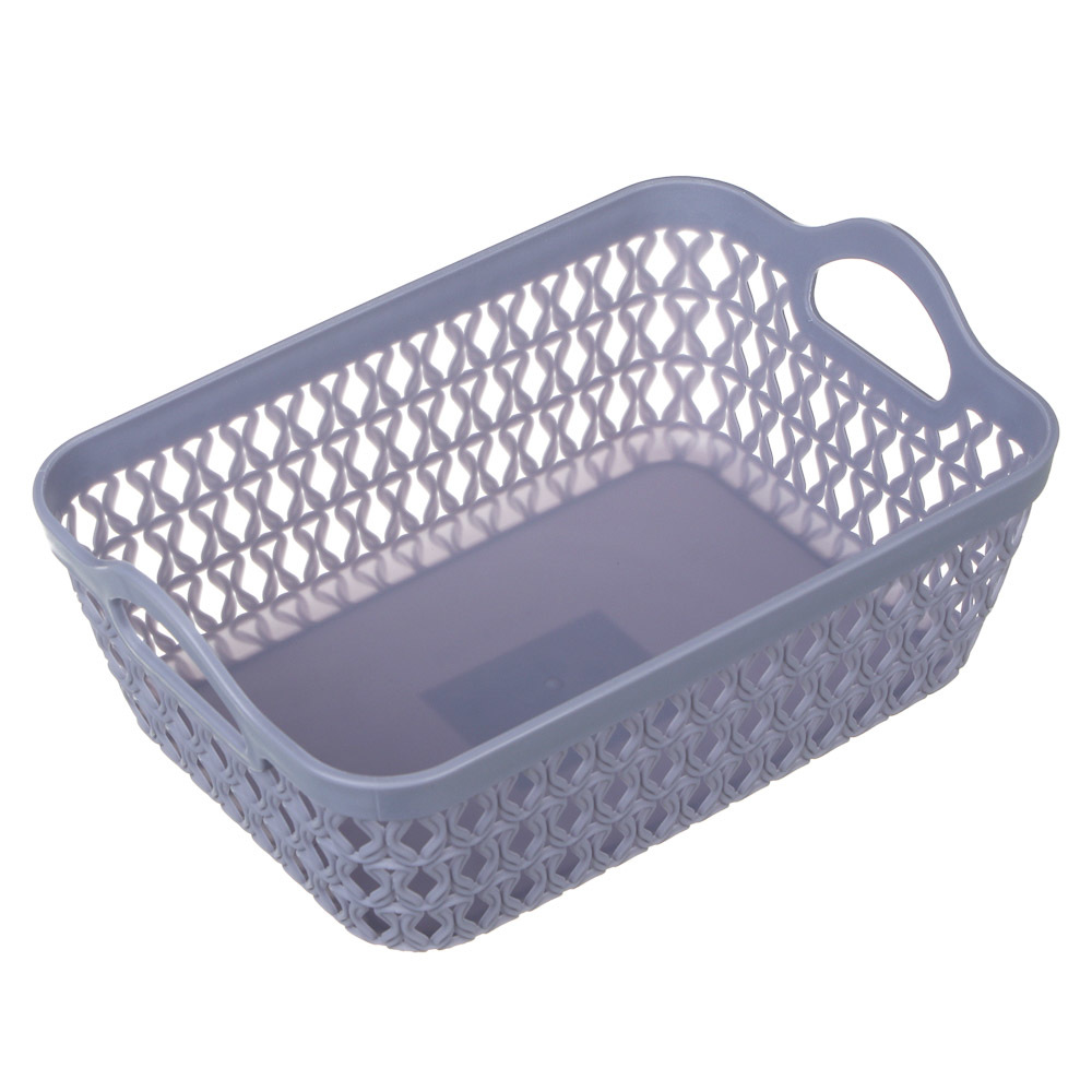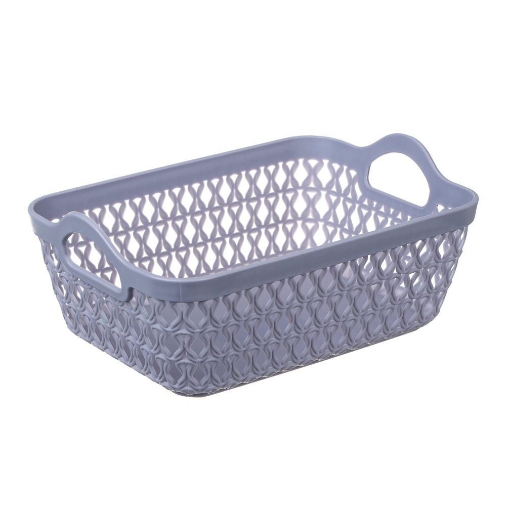 Пластиковая корзина предназначена для хранения самых разных вещей — аксессуаров, белья, пряжи и предметов рукоделия, детских игрушек и туалетных принадлежностей. Для удобной переноски изделия предусмо... Показать описаниетрены боковые ручки.