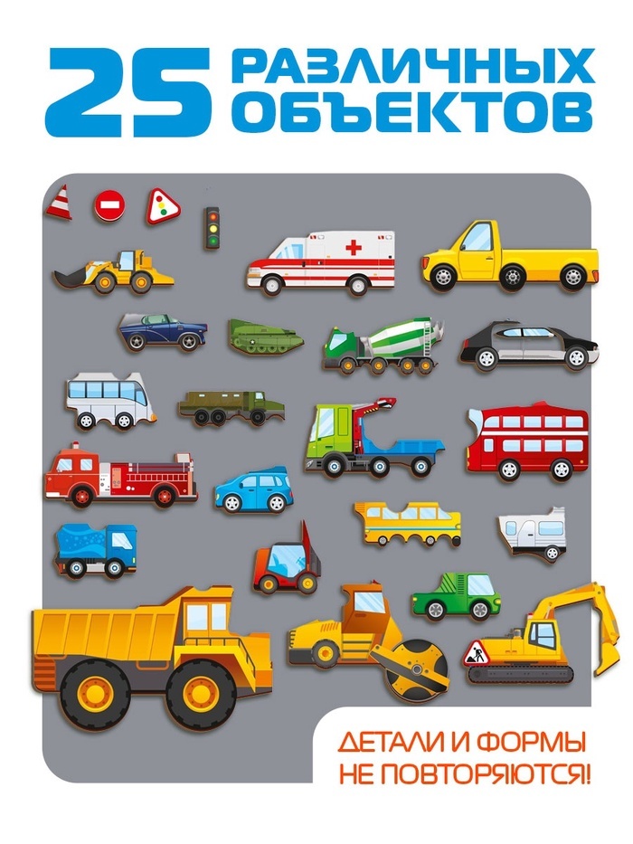 Головоломка из отдельных фигурок - это не только игра в предложенной рамке, но и игра с деталями. Перед сборкой можете спросить у малыша название каждого вида транспорта, где он применяется. Яркие дет... Показать описаниеали, натуральные материалы, интересная сборка не оставит равнодушным ни ребёнка, ни родителя.