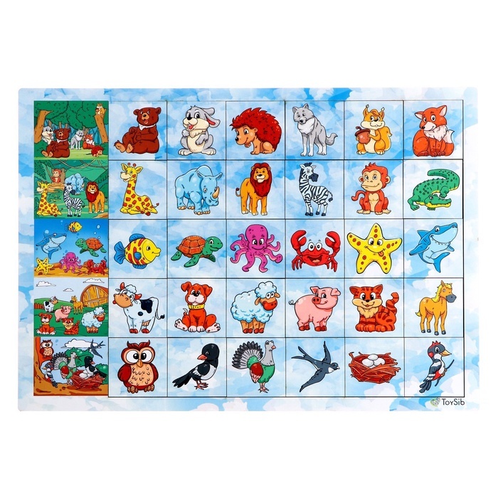 Головоломка "Животные мира" создана для самых умных малышей! Перед началом игры предложите ребёнку назвать всех животных, их отличительные черты. Затем поместите фигурки на соответствующие места. Чтоб... Показать описаниеы малышу было интереснее, придумайте захватывающую историю (как зовут каждого зверька, как они оказались все вместе ит.д.). Фигурками также можно играть отдельно. Во время игры ребёнок знакомится с формами и цветами, развивает мелкую моторику, внимательность и усидчивость, изучает соотношение "больше-меньше".
