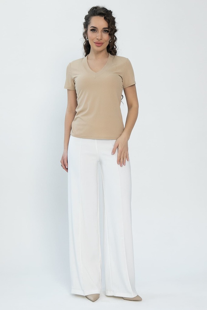 Состав: 65% полиэстер, 30% вискоза, 5% эластан. Материал: трикотаж "Лапша". Цвет: бежевый. Принт: отсутствует. Силуэт: приталенный. Карманы: отсутствуют. Подкладка: отсутствует. Вид зас... Показать описаниетежки: без застёжки. Декоративные элементы: отсутствуют. Длина: 44/ 59 см, 46-48/ 60 см, 50-52/ 61 см, 54-56/ 62 см. Блузка отснята с брюками арт.Б12685-13 Однотонная блузка без принта – настоящий маст-хэв! Благодаря своей универсальности, она легко сочетается с практически любой одеждой, создавая множество стильных образов. V-образный вырез подчеркивает линию декольте, а короткий рукав делает ее идеальным выбором для теплого времени года или как базовый слой под пиджак или кардиган. Материал хорошо тянется. Уход за изделием: ручная стирка до 30 градусов; нельзя отбеливать; отжим запрещён; гладить при t не более 110 С; гладить с изнанки. Внимание! Рекомендуем ориентироваться на размерную сетку и выбирать свой привычный размер, согласно размерной таблице. *Допуск отклонения длины при массовом производстве 1-3 см является нормой.