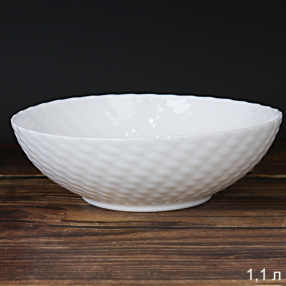 Здравствуйте! Блюдо изготовлено из костяного фарфора, который используют в подаче холодных, а также и горячих блюд.