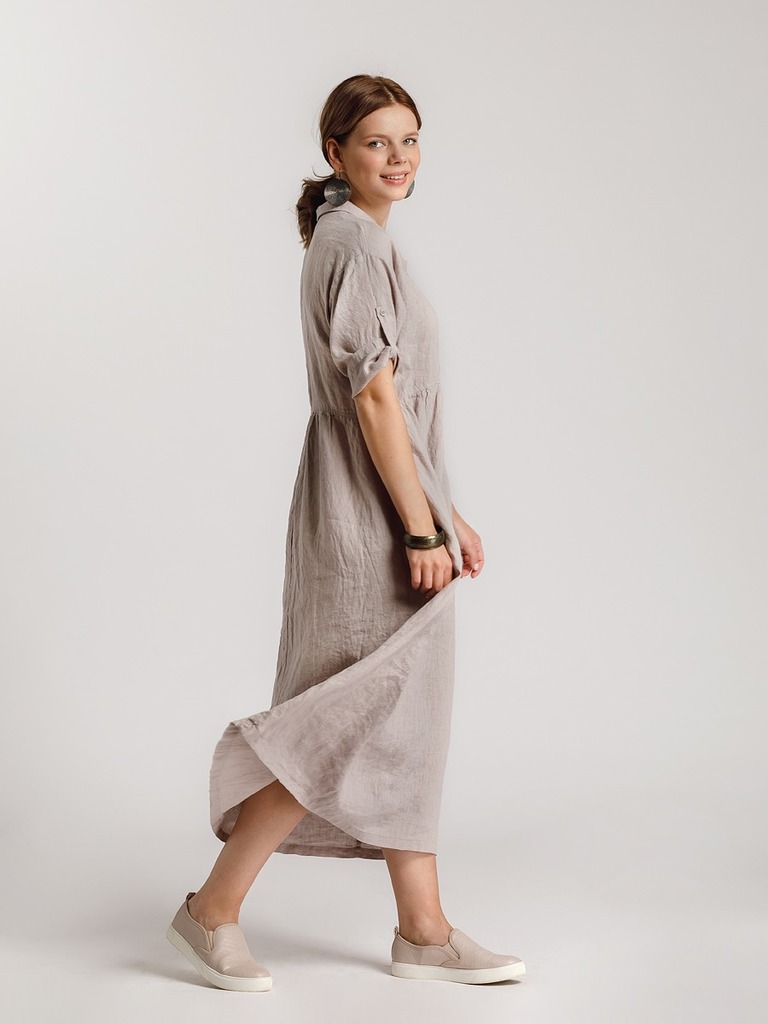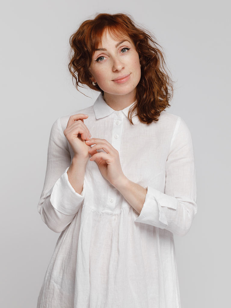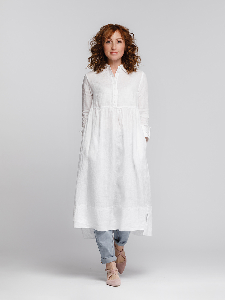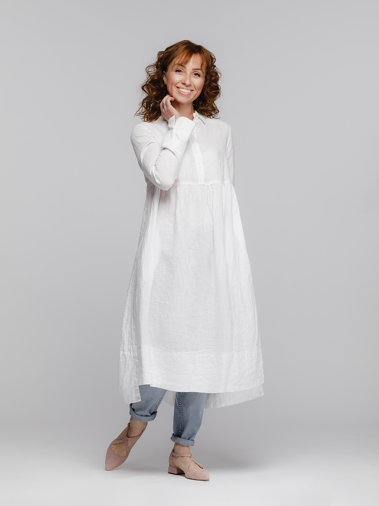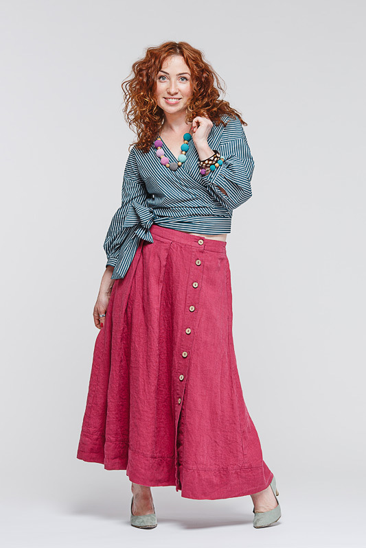 Нет, в размер. Учитывайте, что чем льняная вещь плотнее к телу и тоньше, тем больше растягивается и деформируется при носке.