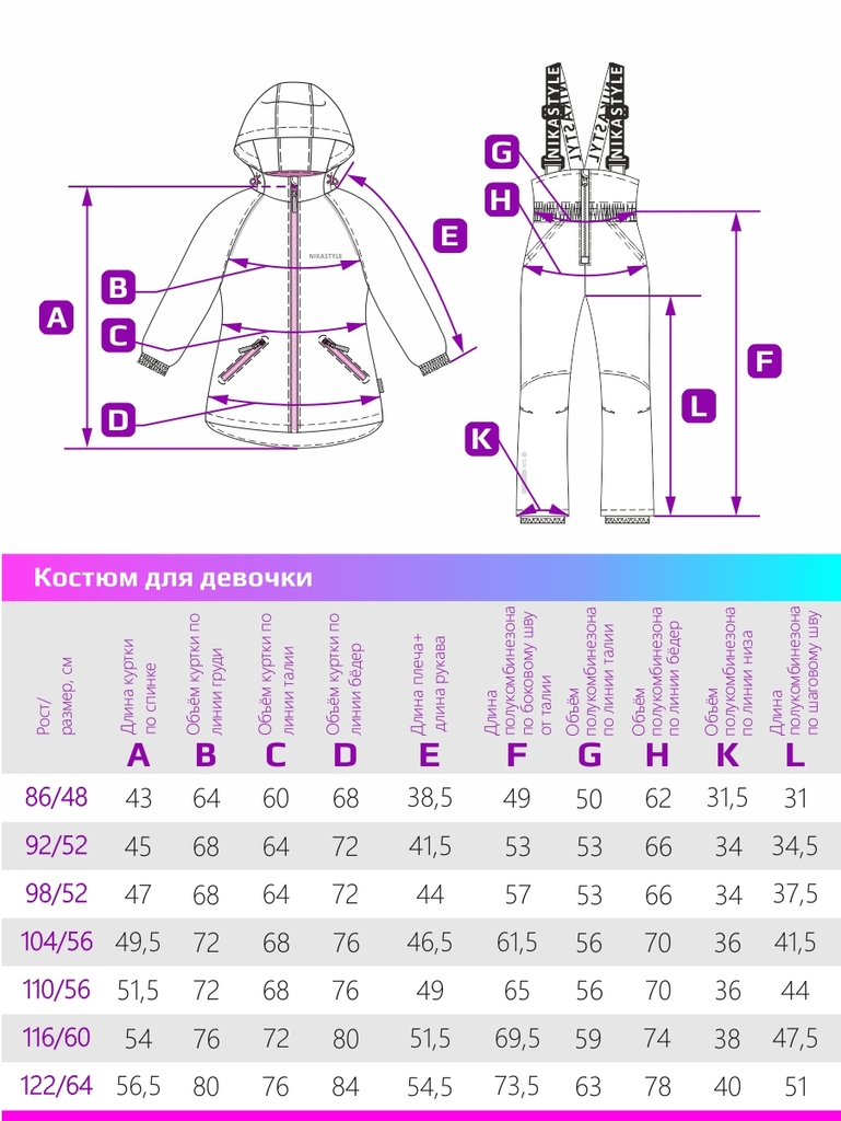 Размер: 92-52, 98-52, 104-56, 110-56, 116-60, 122-64