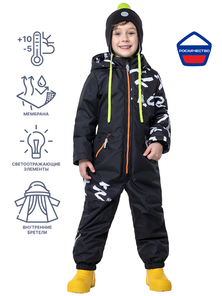 Здравствуйте. Комбинезон SYMBOL из мембранной ткани в сочетании с утеплителем нового поколения fiberlite сохраняет тепло во время прогулок. У комбинзона теплая флисовая подкладка в верхней части до талии. Комфортная температура эксплуатации от -5 до +10 С.