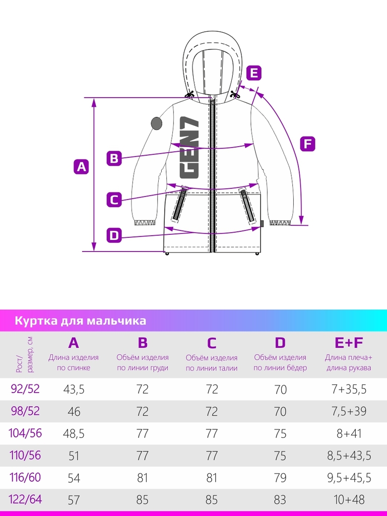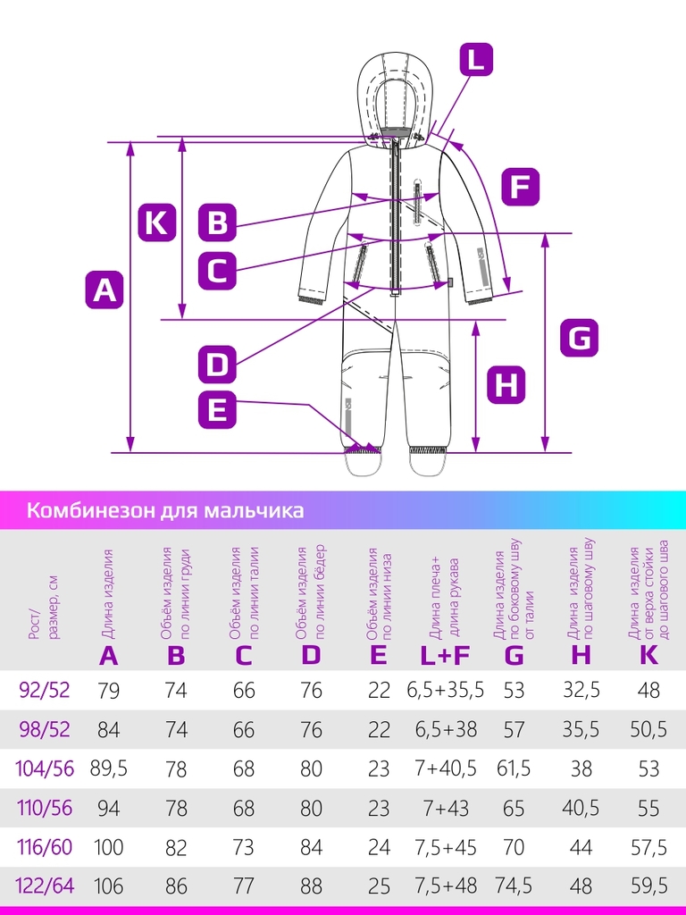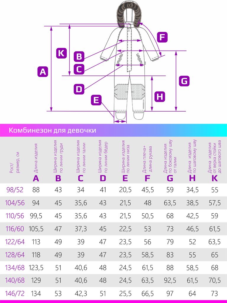 Размер: 98-52, 104-56, 110-56, 116-60, 122-64, 128-64, 134-68, 140-68, 146-72