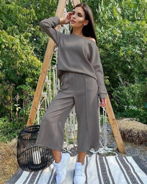 Костюм двойка кофта и капри мышиный RH06