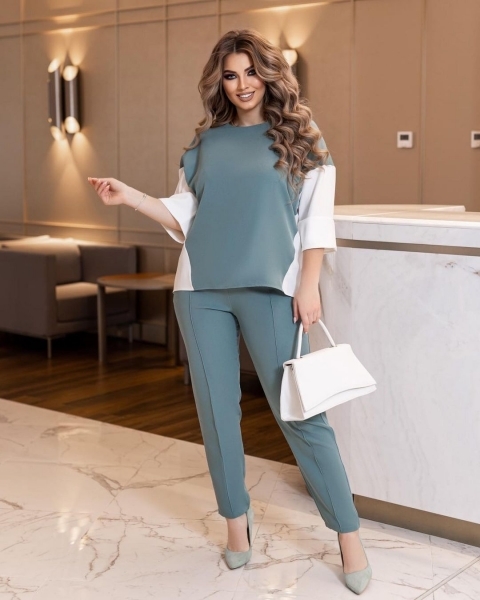 Костюм SIZE PLUS лайт Фисташка с белой вставкой RH06