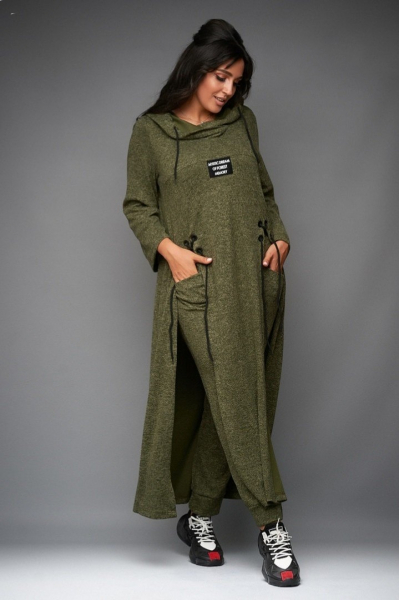 Костюм SIZE PLUS туника и брюки ангора ХАКИ UM29_Новая цена