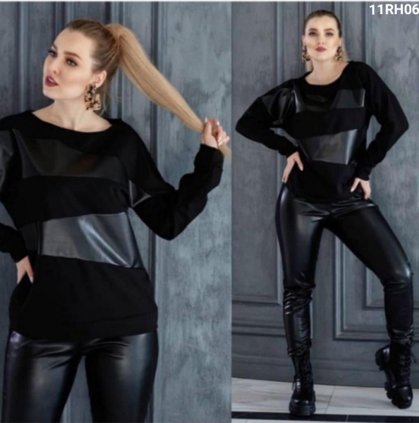 Комбинированный костюм SIZE PLUS вставки под кожу черный RH06