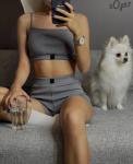 Костюм лапша топ и шорты серый OP37