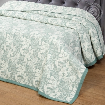 Добрый день! Материал: Ткань сложного жаккардового переплетения внутри п/э нитка. Особенности: Двустороннее хлопковое многослойное жаккардовое покрывало с тонким наполнителем и контурной декоративной строчкой и отделочным хлопковым кантом. Наполнитель: Полиэфирное полое силиконизированное извитое волокно. Плотность 300 гр./м.кв. Чехол: Хлопок 100% жаккардового переплетения. Упаковка: Картонная коробка с ручками. Плотность ткани 240 гр./м.кв.