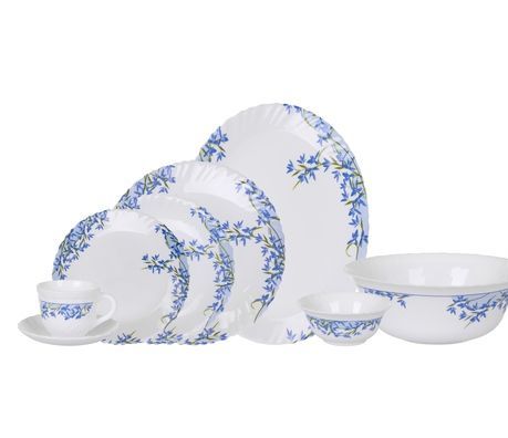 Описание Столовый сервиз Aliya Blue L7796 состоит из 38 предметов на 6 персон. Красивый сервиз из стеклокерамики с голубым цветочным рисунком. В сервиз входят 6 десертных тарелок 19см, 6 суповых тарелок 21см, 6 обеденных тарелок 25см, 6 маленьких салатников 12см, большой салатник 25см, блюдо овальное 30см, 6 чашек 220мл, 6 блюдец.