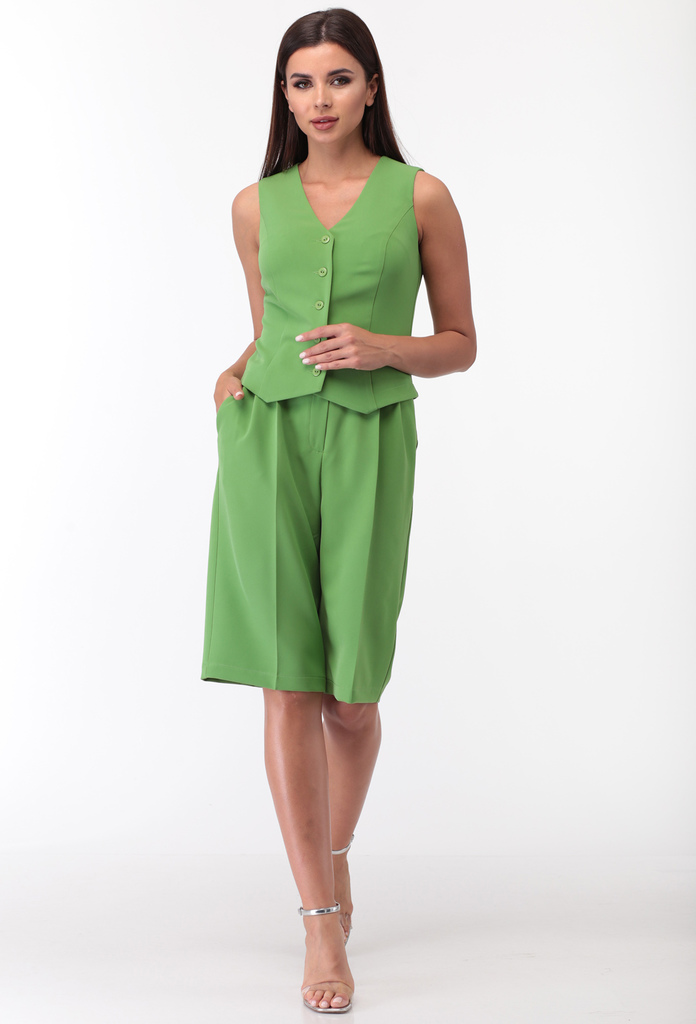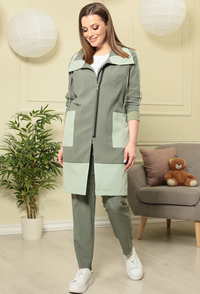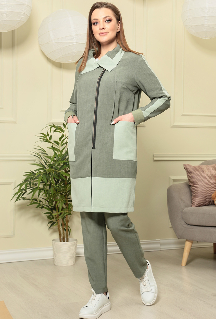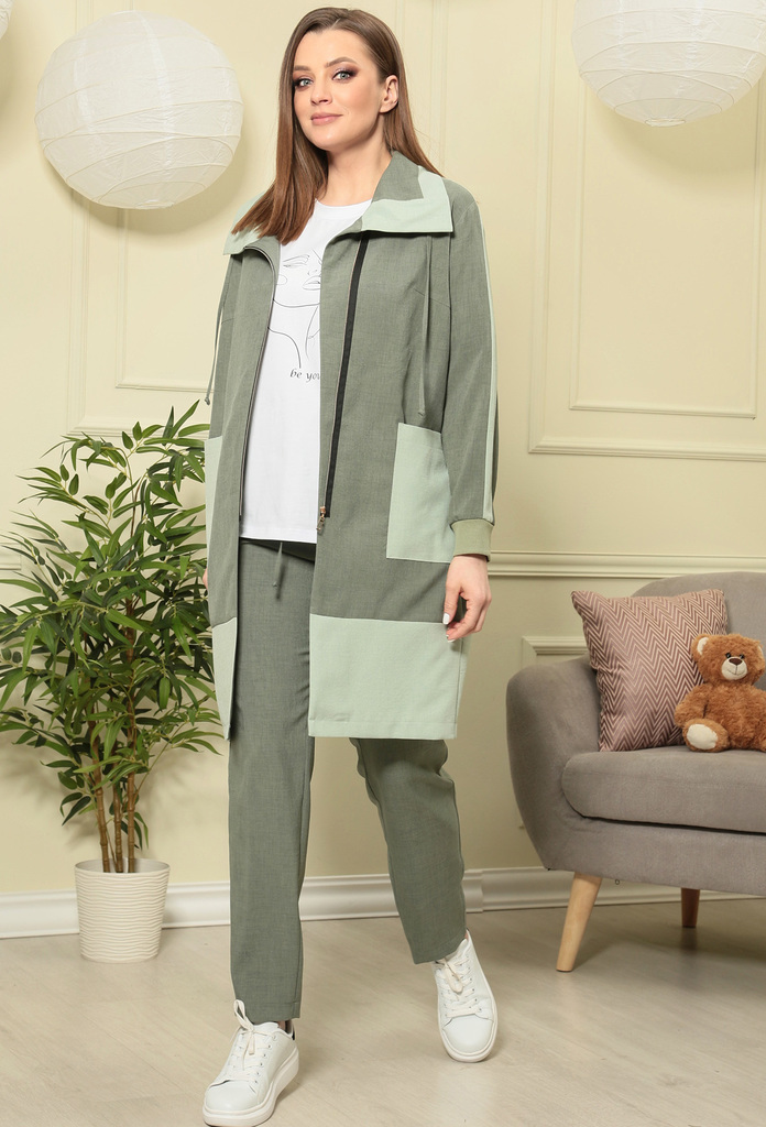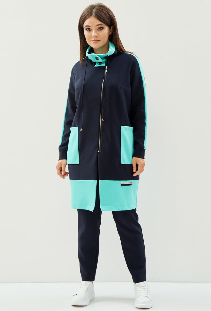 Добрый день! Материал: 95% Полиэстер, 5% Спандекс. Костюм, состоящий из кардигана и брюк, выполнен из трикотажного однотонного полотна в двух контрастных цветах.