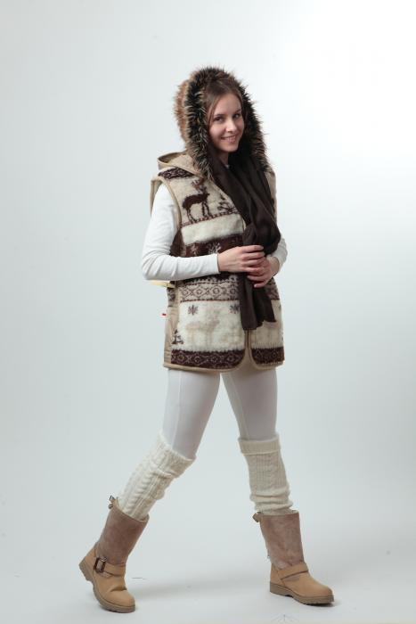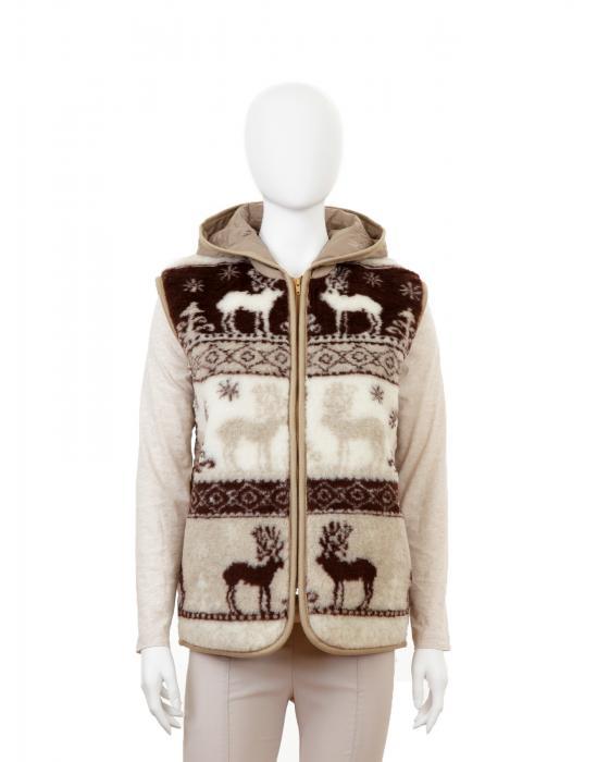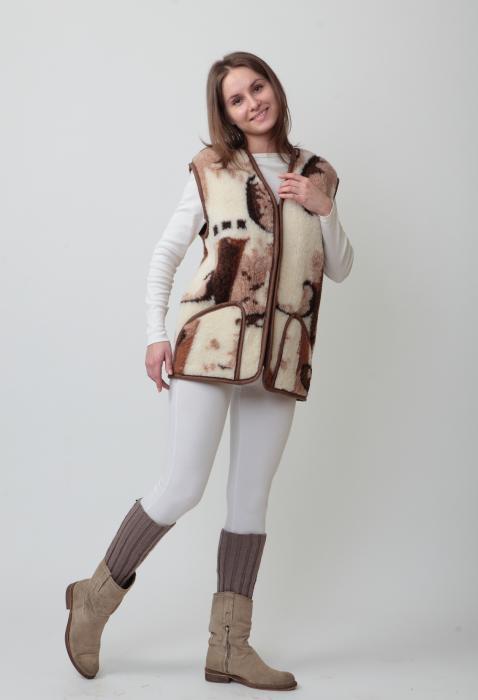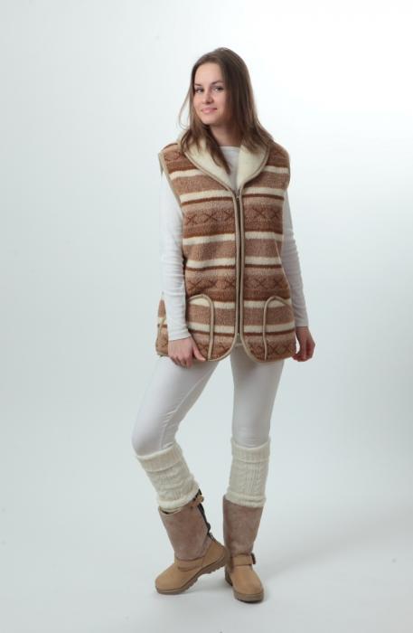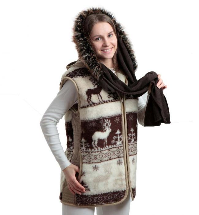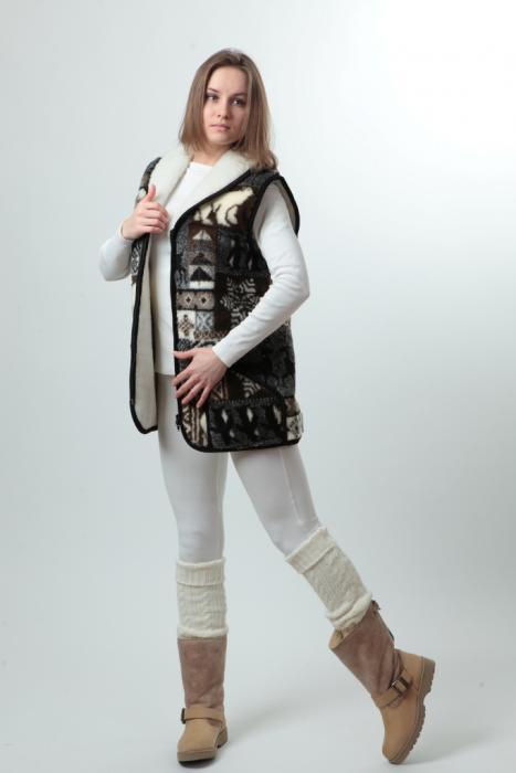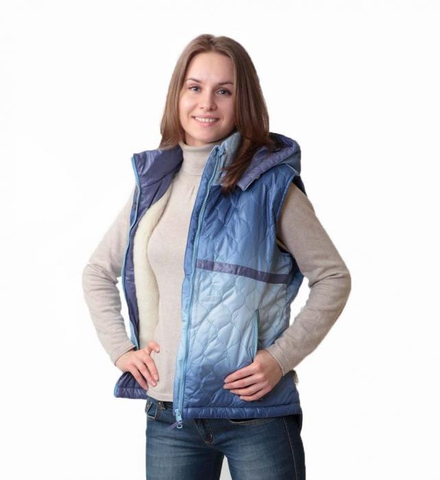 Жилет женский двойной из шерсти мериноса (овечьей шерсти) Состав: верх стеганая плащевая ткань, подкладка овечья шерсть 100% Модель: спорт, воротник-стойка, отстегивающийся капюшон Цвет: принт Длина: ... Показать описаниесредняя, спинка удлиненная Застежка: молния Карманы: карманы на молнии Отделка: контрастная ткань Женский жилет из шерсти - выбор в пользу здоровья и красоты. Шерсть прекрасно впитывает влагу и удерживает тепло, не дает коже перегреться из-за своей уникальной способности пропускать воздух ("дышать"). Купить жилет из шерсти - значит приобрести настоящий кладезь лечебных свойств. Шерсть нейтрализует токсины, улучшает кровообращение благодаря массажному эффекту упругих волокон и бережно воздействует на потенциальные очаги боли - мышцы и суставы. Для женщин это также прекрасный выбор для городской теплой одежды, ведь жилет из шерсти надежно согревает самые уязвимые части тела - грудь и поясницу.