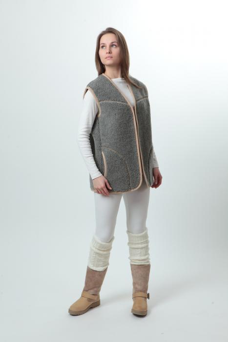 Жилет из шерсти мериноса (овечьей шерсти) Состав: овечья шерсть 100% Модель: классическая, прямой силуэт, без воротника Цвет: серый Длина: удлиненная Застежка: пуговицы-клеванты Карманы: накладные Отд... Показать описаниеелка: велюровый кант Жилеты из овечьей шерсти хорошо впитывают влагу. Естественные воздушные прослойки между волокнами шерсти обеспечивают хорошую тепловую защиту от проникновения холода. Одежда из натуральной шерсти отличается хорошей износостойкостью.
