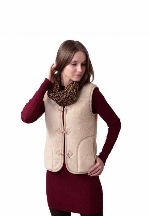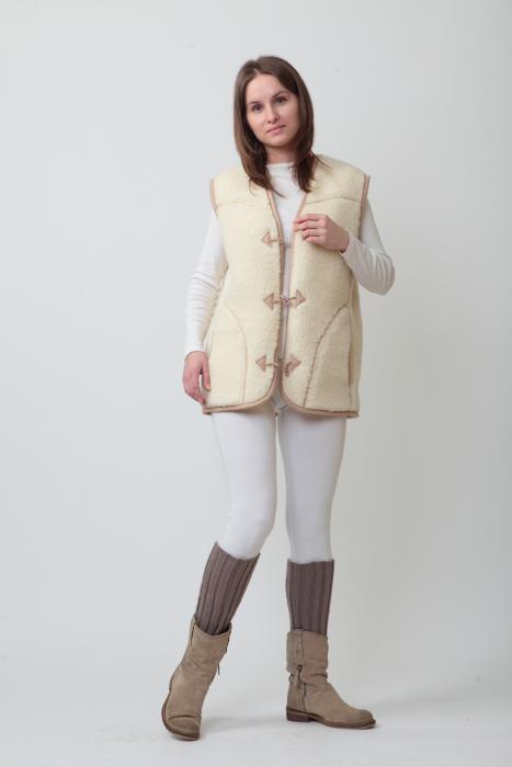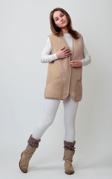 Жилет женский приталенный Состав: шерсть 100% Модель: приталенная Цвет: бежевый Длина: укороченная Застежка: пуговицы-клеванты Карманы: наружные боковые Отделка: велюровый кант Жилеты из натуральной ш... Показать описаниеерсти прекрасно сохраняют тепло и впитывают влагу, позволяют чувствовать себя комфортно. Шерстяное изделие гипоаллергенно, имеет свойство к самоочищению. Одежда из шерсти ламы отличается хорошей износостойкостью.