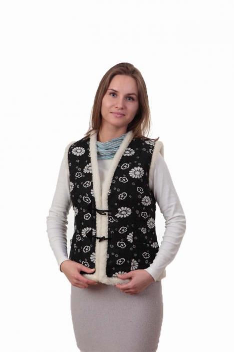 Жилет женский приталенный Состав: верх лен, подкладка шерсть Модель: приталенная Цвет: черный-белый, цветочный принт Длина: укороченная Застежка: пуговицы-клеванты Карманы: наружные боковые Отделка: м... Показать описаниееховая опушка Жилеты из натуральной шерсти прекрасно сохраняют тепло и позволяют чувствовать себя комфортно в любых условиях. Шерстяное изделие гипоаллергенно, имеет свойство к самоочищению. Одежда из шерсти отличается хорошей износостойкостью.