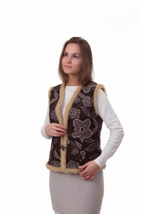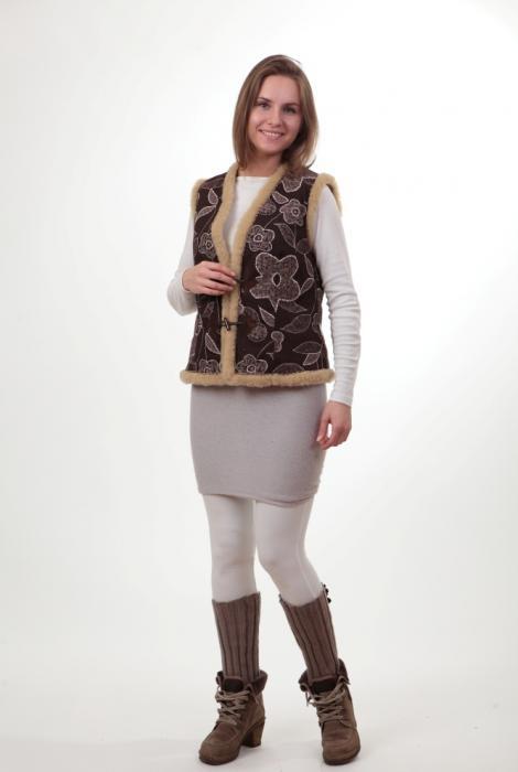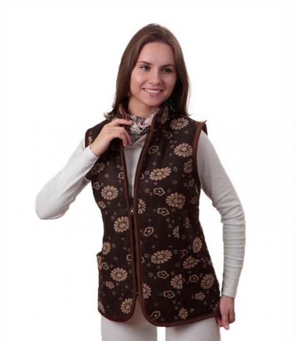 Жилет женский приталенный Состав: верх полушерсть, подкладка шерсть Модель: приталенная Цвет: коричневый, цветочный принт Длина: укороченная Застежка: пуговицы-клеванты Карманы: наружные боковые Жилет... Показать описаниеы из натуральной шерсти прекрасно сохраняют тепло и позволяют чувствовать себя комфортно в любых условиях. Шерстяное изделие гипоаллергенно, имеет свойство к самоочищению. Одежда из шерсти отличается хорошей износостойкостью. Отделка: меховая опушка