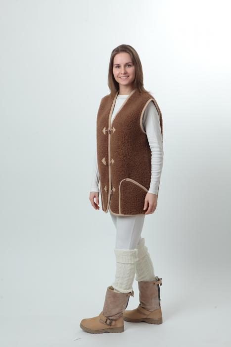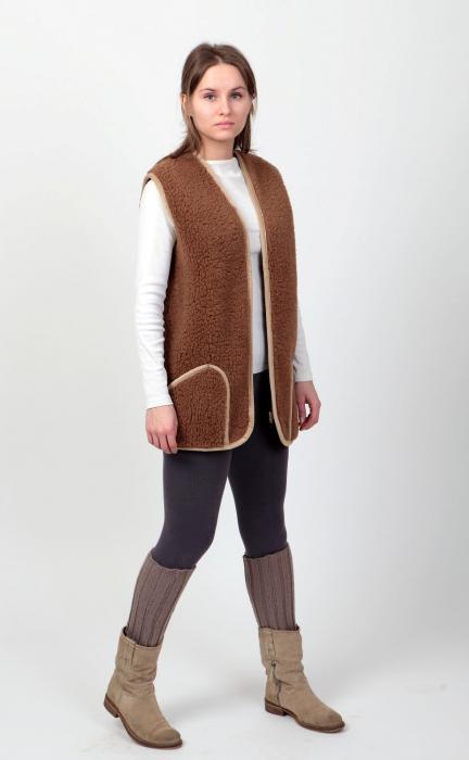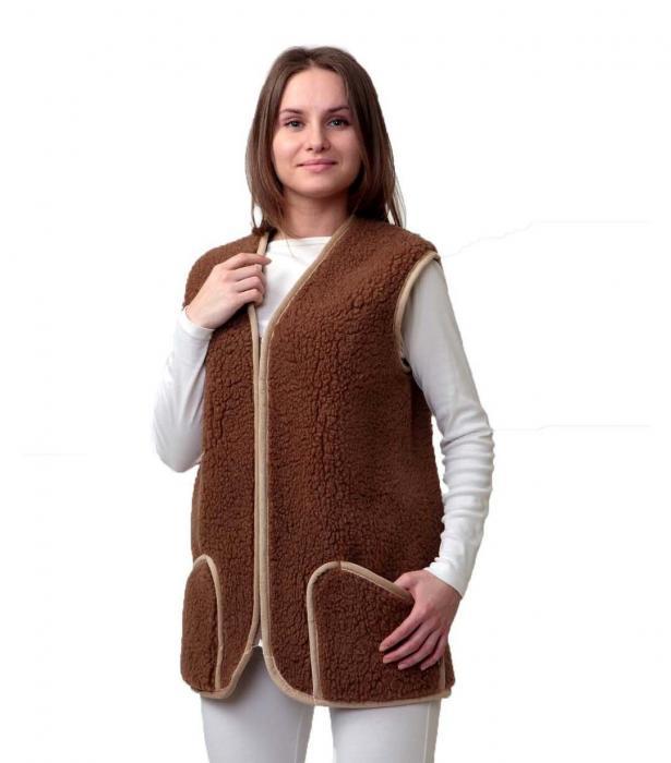Жилет двойной из шерсти мериноса (овечьей шерсти) Состав: верх стеганая плащевая ткань, подкладка овечья шерсть 100% Модель: прямая классическая, без воротника Цвет: коричневый Длина: удлиненная Засте... Показать описаниежка: молния Карманы: наружные карманы Отделка: велюровый кант Жилеты из натуральной шерсти прекрасно сохраняют тепло и позволяют чувствовать себя комфортно в любых условиях. Шерстяные изделия гипоаллергенны, имеют свойство к самоочищению. Жилеты из овечьей шерсти отличаются хорошей износостойкостью.