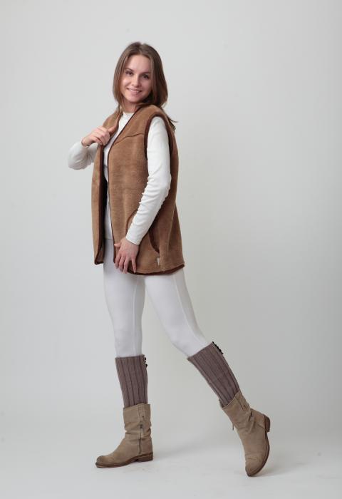 Жилет из верблюжьей шерсти Состав: верблюжья шерсть 10%, овечья шерсть 90% Модель: классическая, прямой силуэт, без воротника Цвет: коричневый Длина: удлиненная Застежка: молния Карманы: накладные Отд... Показать описаниеелка: велюровый кант Жилеты из верблюжьей шерсти хорошо впитывают влагу. Естественные воздушные прослойки между волокнами шерсти обеспечивают хорошую тепловую защиту от проникновения холода. Одежда из натуральной шерсти отличается хорошей износостойкостью.