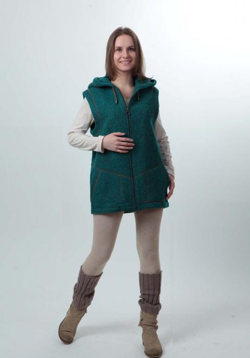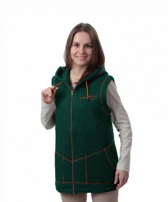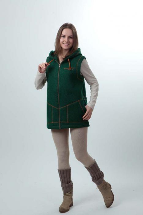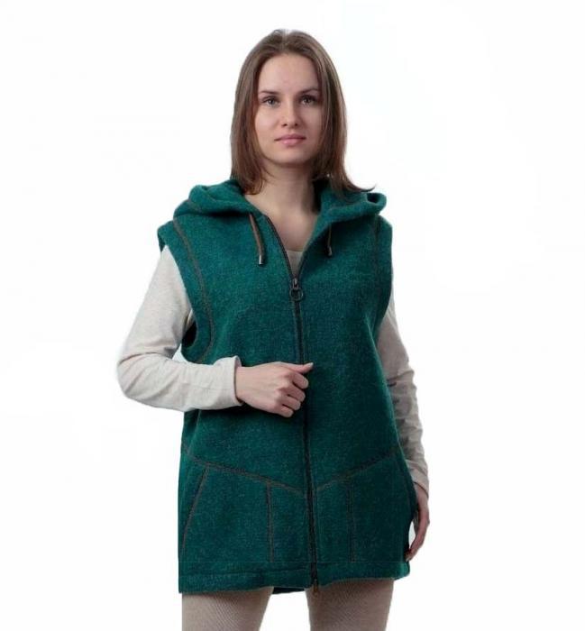 Жилет женский из ворсованной шерсти Состав: овечья шерсть 100% Модель: спорт, прямой силуэт, капюшон с подкладкой их хлопка Цвет: малахит Длина: удлиненная Застежка: молния Карманы: кенгуру Отделка: о... Показать описаниетстрочка цветными нитками Дополнительно: кулиска по низу жилета и капюшону Жилеты из натуральной шерсти прекрасно сохраняют тепло и позволяют чувствовать себя комфортно в любых условиях. Шерстяные изделия гипоаллергенны, имеют свойство к самоочищению. Жилеты из овечьей шерсти отличаются хорошей износостойкостью.