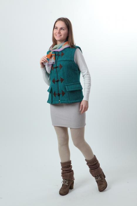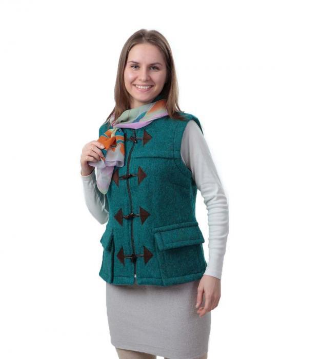 Жилет женский из ворсованной шерсти Состав: овечья шерсть 100% Модель: приталенный силуэт Комплект: шарф шифоновый Цвет: индиго (бирюза) Длина: укороченная Застежка: молния Карманы: наружные накладные... Показать описание карманы Отделка: пуговицы-клеванты Жилеты из натуральной шерсти прекрасно сохраняют тепло и позволяют чувствовать себя комфортно в любых условиях. Шерстяные изделия гипоаллергенны, имеют свойство к самоочищению. Жилеты из овечьей шерсти отличаются хорошей износостойкостью.