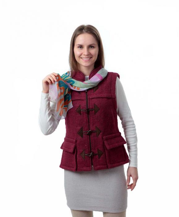 Жилет женский из ворсованной шерсти Жилет женский из ворсованной шерсти Состав: овечья шерсть 100% Модель: приталенный силуэт Комплект: шарф шифоновый Цвет: вишня Длина: укороченная Застежка: молния К... Показать описаниеарманы: наружные накладные карманы Отделка: пуговицы-клеванты Жилеты из натуральной шерсти прекрасно сохраняют тепло и позволяют чувствовать себя комфортно в любых условиях. Шерстяные изделия гипоаллергенны, имеют свойство к самоочищению. Жилеты из овечьей шерсти отличаются хорошей износостойкостью.