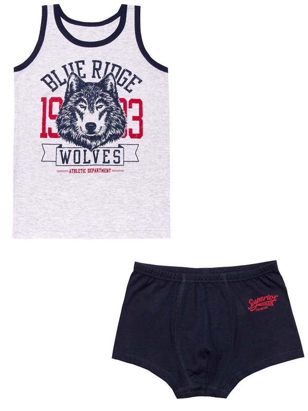 светло-серый+темно-синий/Волк на белом+Лучший чемпион