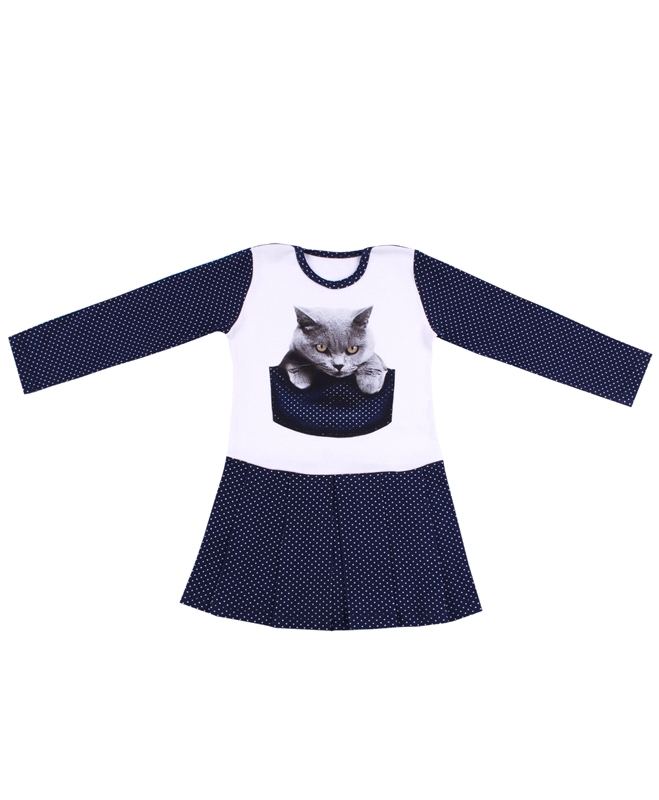 Цвет: белый белый горошек на синем/Кот в кармане/белый горошек на синем