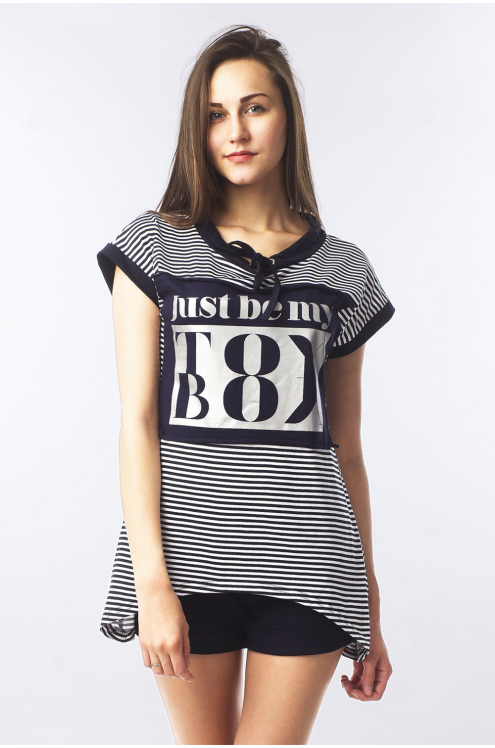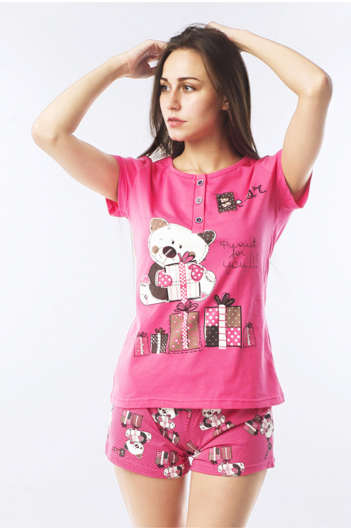 Модель: Комплект "Для тебя"  Материал: кулирка Состав: 100% хлопок Размерный ряд:  50,52,54 Цвета: в ассортименте Романтичный комплект "Для тебя" создан для молоденьких девушек. Произведен из облегчен... Показать описаниеного материала - кулирка. В комплект входят: футболка и шорты. Верхняя часть – это футболка. Крой свободный, слегка приталенный. На груди декорированный рисунок. Горловина дополнена тремя пуговками. Шорты прямые, гармонично подчеркивают бедра. Комплект подходит для отдыха или сна.