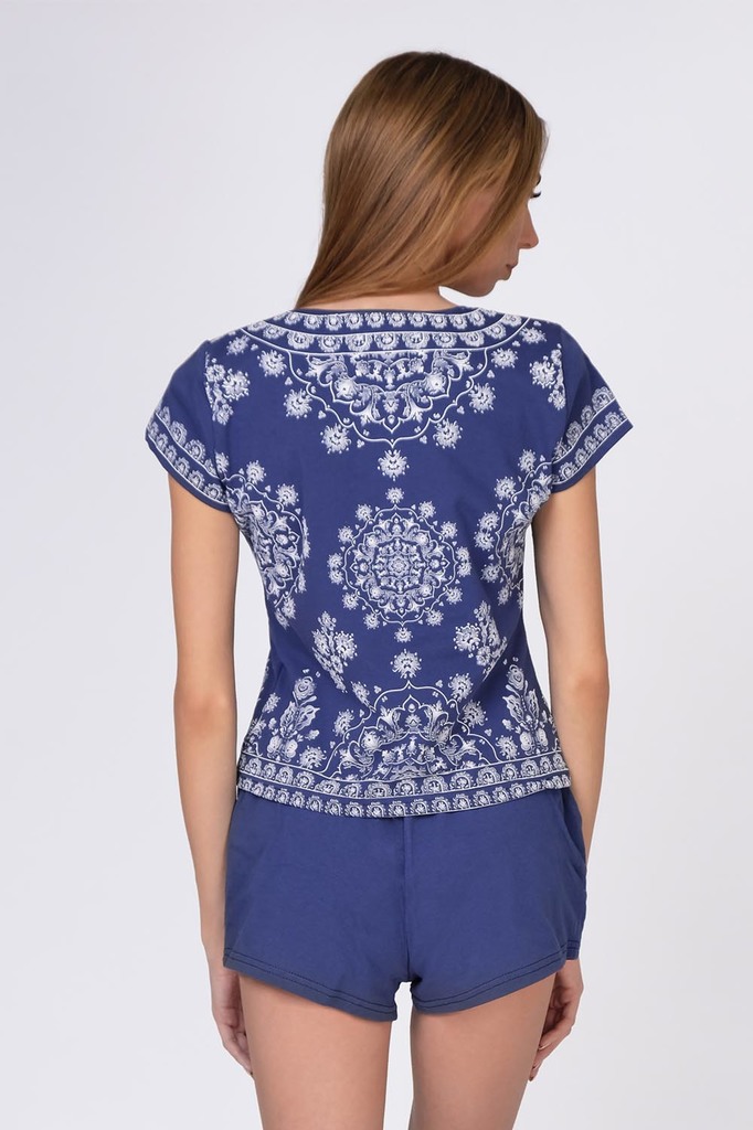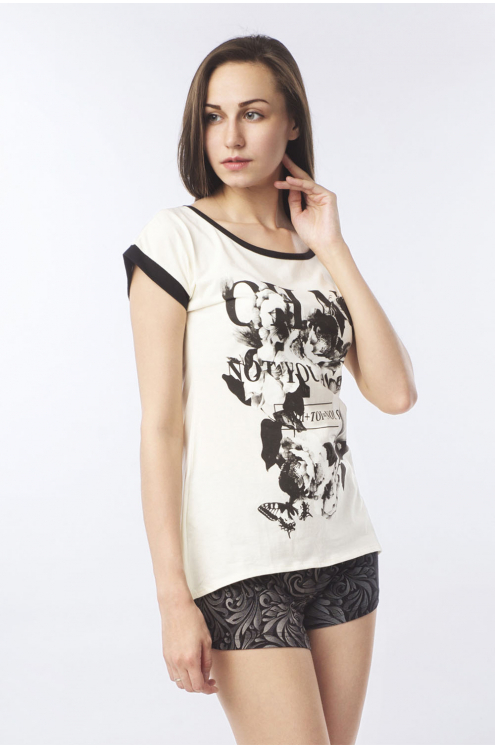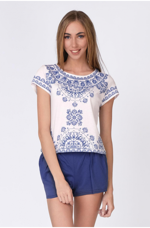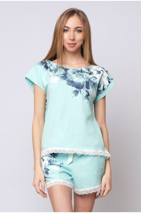 Модель: Комплект "Бутон" Материал: кулирка  Состав:100% хлопок Размерный ряд: 44 - 54 Комплект Бутон дополнит ряды домашней одежды девушки на летний период. Модель произведена из кулирки. Состоит из ф... Показать описаниеутболки и шортиков. Футболка выполнена с модными элементами: круглый низ, свободный крой и модный принт спереди. Сзади футболка немного удлиненная и декорирована небольшим разрезом. Шорты прямые, более темной расцветки с замысловатыми узорами. Комплект подходит не только для отдыха, но и сна.