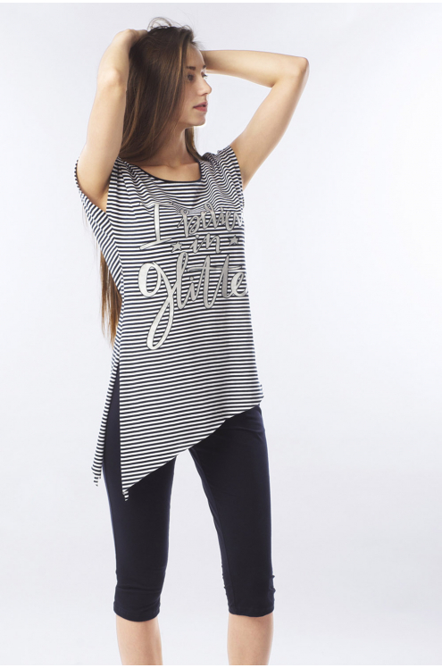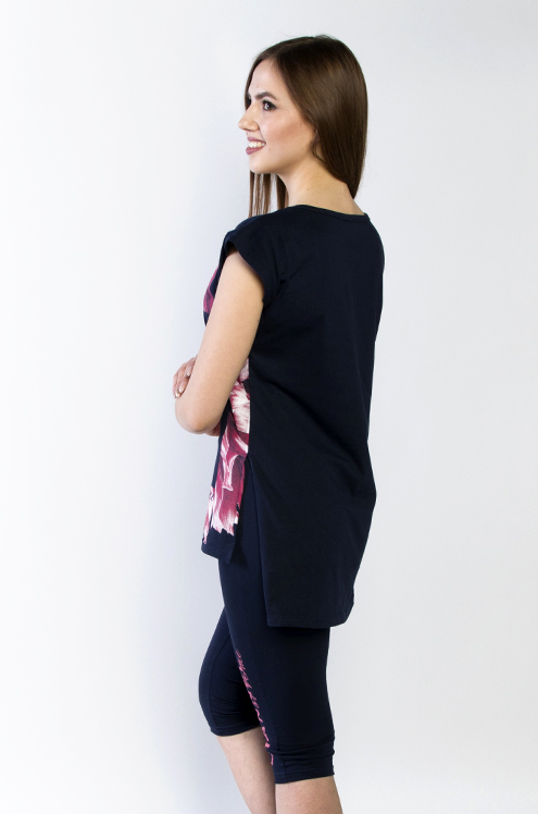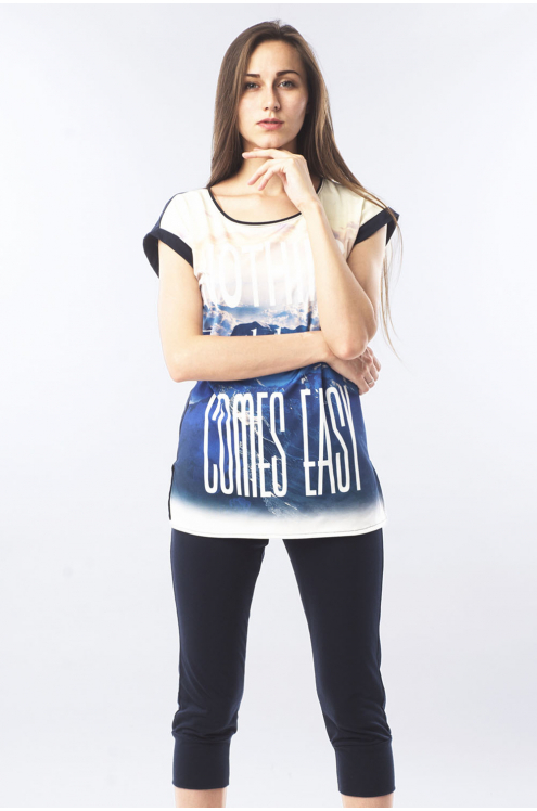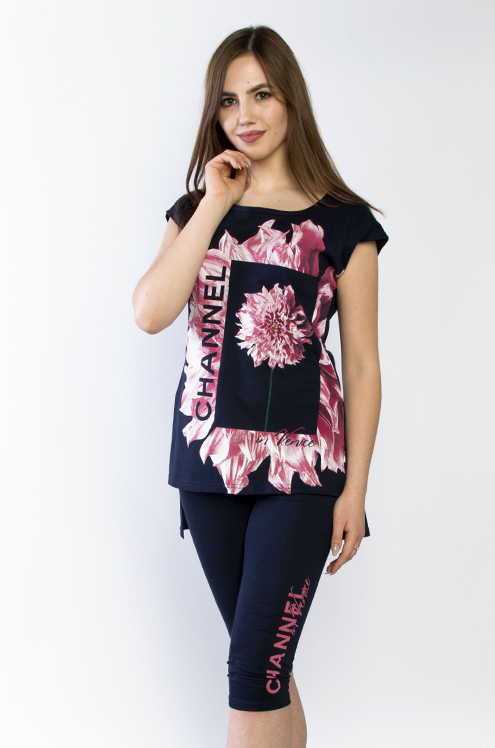 Модель: Комплект "Альпы" Материал: кулирка+микрофибра Состав: 100% хлопок, 100% пэ Размерный ряд: 44-54 Удобный комплект Альпы понравится спортивным энергичным женщинам. Материалом для создания компле... Показать описаниекта послужила кулирка и микрофибра. В наборе футболка и бриджи. Приталенная футболка подчеркивает грудь и талию, но не стесняет движения. На передней части расположен яркий рисунок с принтом из английских слов. Низ - обтягивающие бриджи. Изделие можно носить дома или на даче. Отлично тянется и подчеркивает стройность фигуры.