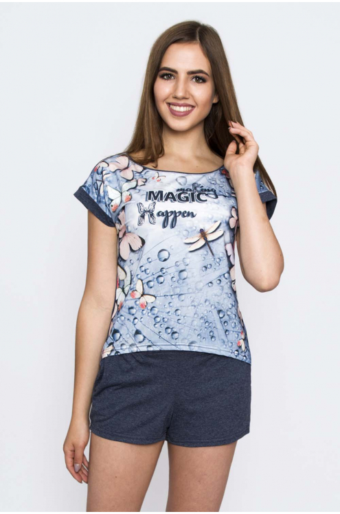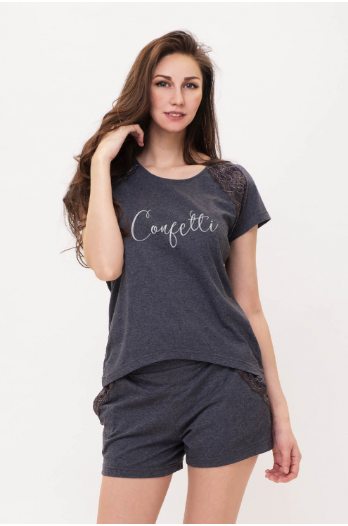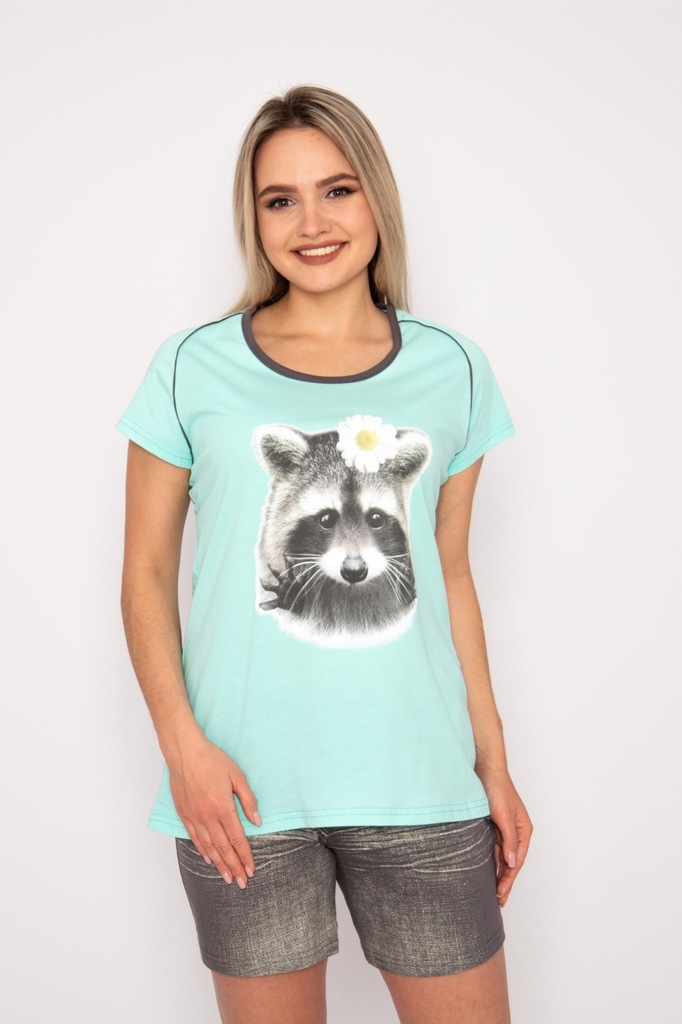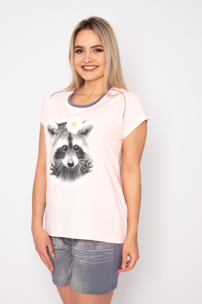 Модель: Комплект "Енот" Материал: кулирка Состав: 100% хлопок  Размерный ряд: 52,54 Цвета: в ассортименте Забавный комплект Енот понравится девушкам и молодым женщинам. Выполнен из плотного материала ... Показать описаниекулирка. Набор состоит из футболки и шортиков. Крой футболки свободный, слегка приталенный. Горловина полукруглая. На груди расположен декоративный рисунок «Енотик». Шортики не обтягивают бедра. В них удобно сидеть, лежать и даже спать. Шорты оформлены в стиле джинс. Модель создаст яркий веселый образ для домашнего отдыха.