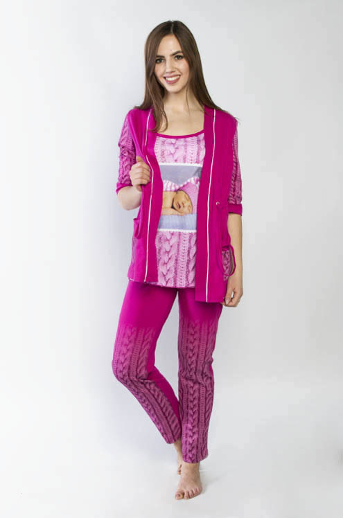 Модель: Комплект Baby Материал: кулирка Состав: 100% хлопок Размерный ряд: 46, 50-58 Цвета: в ассортименте Комплект Baby создан для беременных женщин. Выполнен из легкого материала – кулирка. Состоит ... Показать описаниеиз трех вещей: майки, брюк и кофточки с поясом. Крой изделия адаптирован под фигуру будущей мамы. Майка и кофта имеют дополнительное место для живота. Брюки снабжены эластичной резинкой, которая не утягивает живот. Ткань украшена принтом в виде вязаной ленты и изображением спящего малыша. Удобная домашняя одежда, в которой время ожидания станет приятнее.