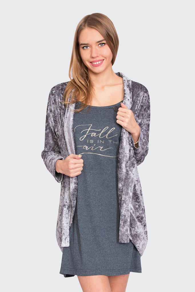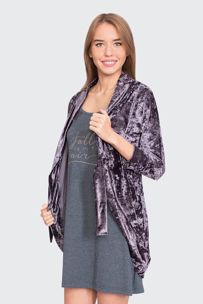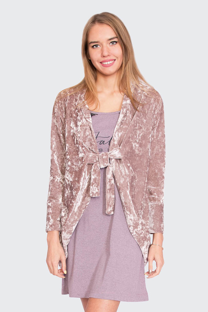 Модель: Комплект AIR Материал:  кулирка+велюр Состав: 100% хлопок, 80% хлопок 20% пэ Размерный ряд: 44-54 Женственный комплект AIR - удобный домашний наряд. Выполнен из кулирки и велюра. В наборе: сор... Показать описаниеочка и накидка. Сорочка на бретельках свободного кроя. Подол доходит до колена. Накидку можно использовать как халатик. Фиксируется при помощи пояса. Накидка слегка короче, чем платье. Сорочка отлично подойдет для сна, а мягкая и нежная накидка согреет прохладным вечером.