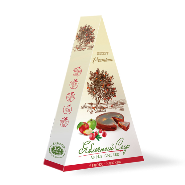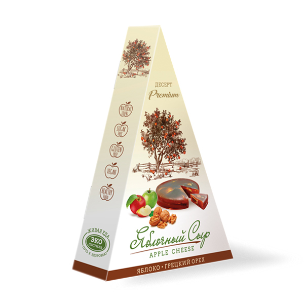 Яблочный сыр с грецким орехом - десерт изготовленный по старинному рецепту. Это старинное блюдо времён Великого Княжества Литовского. Яблочный сыр готовят литовцы, поляки, белорусы. Называют его сыром... Показать описание потому, что способ приготовления такой же как и обычных сыров. Яблочная масса формируется в сырных мешках, выдерживается под гнётом и затем долго высушивается - "созревает". В результате получается восхитительное, натуральное лакомство. Состав: Яблочное пюре, вяленые яблоки, грецкий орех. Пищевая ценность на 100 г. продукта: белки 1,3 г, жиры 0,7 г, углеводы 48,1 г. Энергетическая ценность в 100 г.: 204 ккал/855 кДж. Срок годности: 12 месяцев. Хранить при температуре от 0 до 25 С, при относительной влажности воздуха не более 75%