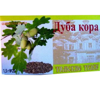 Назначение: кора дуба применяется в качестве вяжущего и противовоспалительного средства при воспалительных заболеваниях слизистой оболочки полости рта, зева, глотки, гортани, гингивитах (воспалении сл... Показать описаниеизистой оболочки полости рта). А также при желудочных кровотечениях, гастритах, хронической диарее, геморрое, язве желудка, наличие крови в моче, рахите, пищевых отравлений. Противопоказания: индивидуальная непереносимость. Приготовление и прием: Отвар коры дуба: 2 фильтр-пакета заливают 250 мл. воды, настаивают на водяной бане 1 ч. Применяют в виде примочек, клизм, ванночек, промываний. Для полоскания - 8 раз в день. Настой коры дуба: 1 фильтр-пакет настаивают 400 мл. охлажденной кипяченой воды 6 ч, затем процеживают. Принимают по 1/2 стакана 3-4 раза в день перед едой. Условия хранения: хранят в сухом, защищенном от света месте. Отпускается без рецепта. Вес: 20 пакетиков по 1,5 гр. Упаковка: коробка картон.