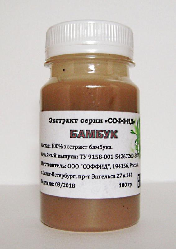 Описание и полезные свойства экстракта бамбука. Потратив совсем немного времени, Вы сможете найти огромное количество информации об уникальных полезных свойствах экстракта бамбука. Здесь же мы останов... Показать описаниеимся на тех, что пригодятся для достижения нашей главной цели – привести себя в форму. Прежде всего следует отметить, что эффективность любых диет и результаты приема любых средств для нормализации веса во многом зависят от того, готов ли наш организм к приему, а главное, усвоению новых активных веществ. Признаемся, что далеко не все из нас всю жизнь вели здоровый образ жизни. За это время в организме накопилось очень большое количество различного рода токсинов. Некоторые выводятся со временем самостоятельно, некоторые живут в нас очень долго и начинают постепенно превращать этот наш организм в огромную помойку. Они влияют на все: обмен веществ, состояние волос, кожи и ногтей, иммунитет, наше моральное и физическое состояние. А главное – они не дают нормально усваиваться всему полезному, что мы хотим привнести в организм извне. Что самое интересное, эти «трудновыводимые» токсины есть ничто иное, как результаты жизнедеятельности наших клеток, а также то, во что они превращаются после окончания своего жизненного цикла. Поэтому наш организм время от времени необходимо очищать от всего этого, особенно перед тем, как начать его наполнять всяческими «полезностями». Вот тут нам на помощь приходит экстракт бамбука. Одним из его главных свойств является способность выводить из организма токсины и многие другие «вредности». При этом бамбук обладает исключительными избирательными способностями. В отличие от того же активированного угля, который выводит из нашего организма все, и хорошее, и плохое, экстракт бамбука абсорбирует и очищает наш организм только от вредных веществ. Ведь не зря он произрастает, как правило в болотистых жарких местах, где процесс гниения и разложения идет непрерывно. В состав данного продукта входят: вода, экстракт бамбука и ксантовая камедь (натуральный полисахарид). Применение экстракта бамбука: Перед применением взбалтывать. Экстракт разводится в половине стакана теплой воды. Советуем начать с 5-10 капель 2 раза в день: утром и перед сном. Натощак. Если через 2 дня такого использования организм принял это количество, то можно перейти к рекомендуемой дозировке – 30 капель 2 раза в день (опять же, утром и вечером). Это примерно половина чайной ложки. На 1 курс достаточно 1 (иногда 2) бутылки по 100мл. В год рекомендуется проходить 3 подобных курса. Результаты. Прежде всего наш организм очистится будет готов принимать и усваивать любые активные вещества. Например, экстракт зеленого кофе для нормализации веса. Кроме того, появится ощущение свежести и бодрости тела и духа. Побочное действие: не выявлено. Противопоказания: Артрит, геморрой в острой стадии, полипы в кишечнике. Не является лекарственным средством. Перед применением рекомендуется проконсультироваться с врачом.