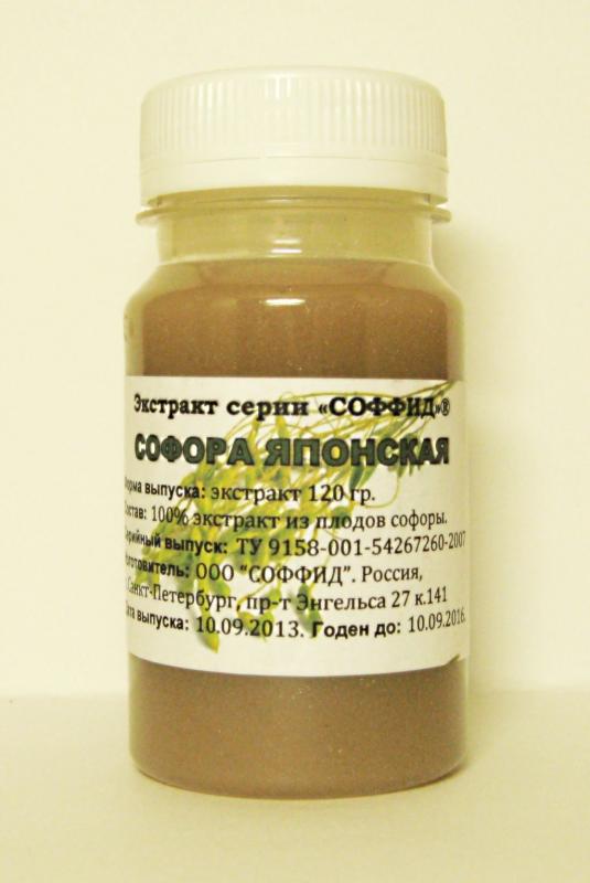 Показания к применению: Укрепляет стенки сосудов и капилляров, уменьшает их хрупкость проницаемость. Обновляет и очищает кровь, восстанавливает кровоток. Гипертония, стенокардия, сахарный диабет. Тром... Показать описаниебофлебит глубоких и поверхностных вен, варикозное расширение вен, трофические язвы. Склеротическое повреждение сосудов, атеросклероз, внутреннее кровотечение. Капиллярное кровоизлияние в мозг, сердце, сетчатку глаза. Заболевания почек и печени. Гастрит, колит, язвы желудка и двенадцатиперстной кишки. Бронхит, бронхиальная астма (разжижает и выводит мокроту). Диарея, дизентерия, туберкулёз, плеврит, пневмония. Бессонница, неврозы, климакс. Способ применения и дозировка: принимать по 1/2 чайной ложки перед сном. Рекомендуется принимать в комплексе с экстрактом омелой белой, так как омела очищает и выводит органические соли и отложения, а софора - неорганические. В результате эффективно очищаются и восстанавливаются стенки сосудов. Побочные действия: Не выявлены. Внимание! Не превышать указанную дозировку! Не рекомендуется принимать препарат после окончания срока годности, указанного на упаковке! Условия хранения: В прохладном, защищенном от света месте. Не является лекарственным средством. Перед применением рекомендуется проконсультироваться с врачом.