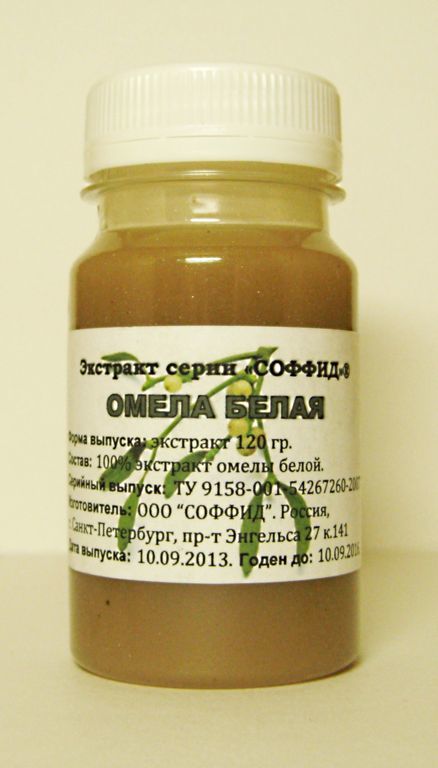 Состав: 100% экстракт омелы белой, ксантовая камедь. Химический состав. Листья омелы белой содержат висцерин, вискотоксин, спирты, вискол, урсуловую и олеаноловую кислоты, холин, алкалоиды, жирное мас... Показать описаниело, смолистые вещества, каротин и аскорбиновую кислоту. В ягодах кустарника содержится масло, в состав которого входит линолевая, олеиновая, пальмитиновая кислоты, смолистые вещества, каучук, витамин С и каротин. Омела белая - свойства растения. Препараты омелы белой улучшают сердечную деятельность, оказывают успокаивающее и гипотензивное действие. Также кустарник обладает противовоспалительными, мочегонными, вяжущими, обезболивающими, кровоостанавливающими свойствами. Омела белая - применение: Выведение токсинов и шлаков из организма. Гипертоническая болезнь, ишемическая болезнь сердца, атеросклероз, сахарный диабет. Нарушение периферического и мозгового кровообращения. Неврозы, бессонница, эпилепсия, физическое и психическое переутомление. Туберкулёз лёгких, бронхиальная астма. Головные боли, головокружения, упадок сил. Геморрой, энурез. Варикозное расширение вен, тромбофлебит, трофические язвы. Заболевания поджелудочной железы, воспалительные заболевания печени и почек. Гинекологические заболевания. Повышение общего тонуса и улучшения памяти. Является противоопухолевым средством, так как тормозит развитие раковых клеток. Способ применения и дозировка: Развести 30 капель (1/2 чайной ложки) экстракта в половине стакана теплой воды. Принимать 1 раз в день перед сном. Курс приема: Рекомендуется принимать в комплексе с экстрактом софоры японской, так как софора выводит неорганические отложения, омела – органические, в результате чего эффективно очищаются и восстанавливаются стенки сосудов. Побочные действия: Не выявлены. Внимание: Не превышать указанную дозировку! Не рекомендуется принимать препарат после окончания срока годности, указанного на упаковке! Условия хранения: В прохладном, защищенном от света месте. Не является лекарственным средством. Перед применением рекомендуется проконсультироваться с врачом.