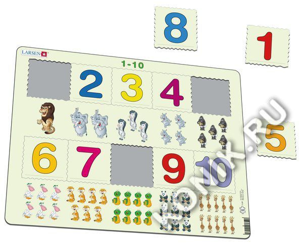 Пазлы Ларсен - это обучающие пазлы. Пазл 1-10 относится к серии Математика и предназначен для самых маленьких. На картоне отпечатано десять различных символов, и детям необходимо правильно разместить ... Показать описаниевырубленные числа от 1 до 10 в соответствии с количеством заданных символов. Многообразие форм вырубки и различные размеры отдельных элементов способствуют развитию мелкой моторики у малышей. Сделанные из высококачественного трехслойного картона, они не деформируются и легко берутся в руки. Все пазлы снабжены специальной подложкой, благодаря чему их удобно собирать. В наборе: 10 элементов пазла. Размер собранного поля - 36,5 х 28,5 см.