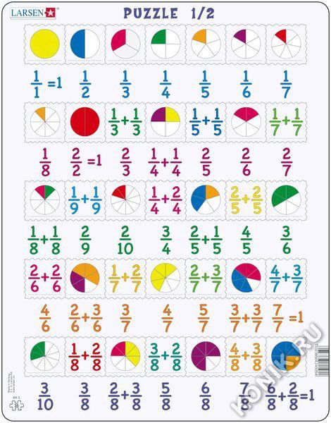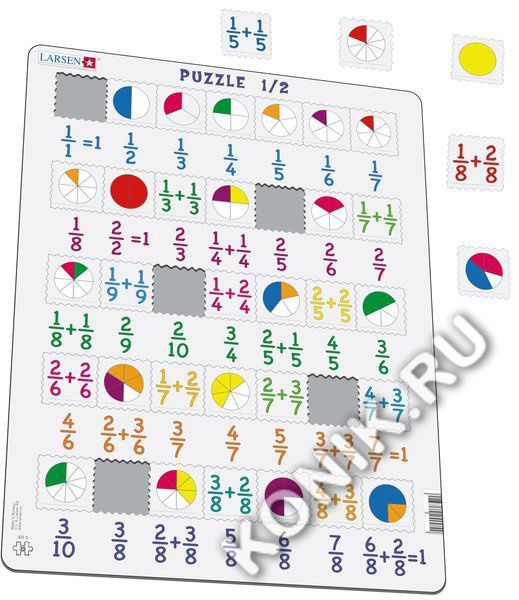 Пазлы Ларсен - это качественные обучающие пазлы. Пазл 1/2 относится к серии Математика и ориентирован на детей от 7 лет. В игровой форме пазл знакомит детей с основами деления. При этом ответ отпечата... Показать описаниен на картоне, а детям необходимо найти правильное решение среди числовых примеров и окружности с выделенными секторами. Многообразие форм вырубки и различные размеры отдельных элементов способствуют развитию мелкой моторики у малышей. Сделанные из высококачественного трехслойного картона, они не деформируются и легко берутся в руки. Все пазлы снабжены специальной подложкой, благодаря чему их удобно собирать. В наборе: 35 элементов пазла. Размер собранного поля - 36,5 х 28,5 см.