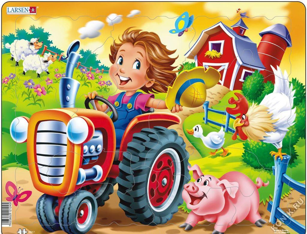 Новинка! Большой красочный пазл Larsen расскажет малышу об увлекательной жизни на ферме. На пазле изображен мальчик, катающийся на тракторе, а также множество дополнительных деталей и персонажей, кото... Показать описаниерые делают сборку пазла еще более увлекательным занятием. По готовому изображению можно составить развернутый рассказ с упоминанием представленных героев. Пазл Larsen выполнен из прочного многослойного картона, детали удобно брать в ручки и соединять между собой. Игровой пазл можно использовать много раз, собирая и разбирая картинку. Игра с пазлами развивает мелкую моторику рук, внимание, логическое мышление и творческое воображение. В наборе: 15 элементов пазла. Размер собранного поля - 36,5 х 28,5 см.