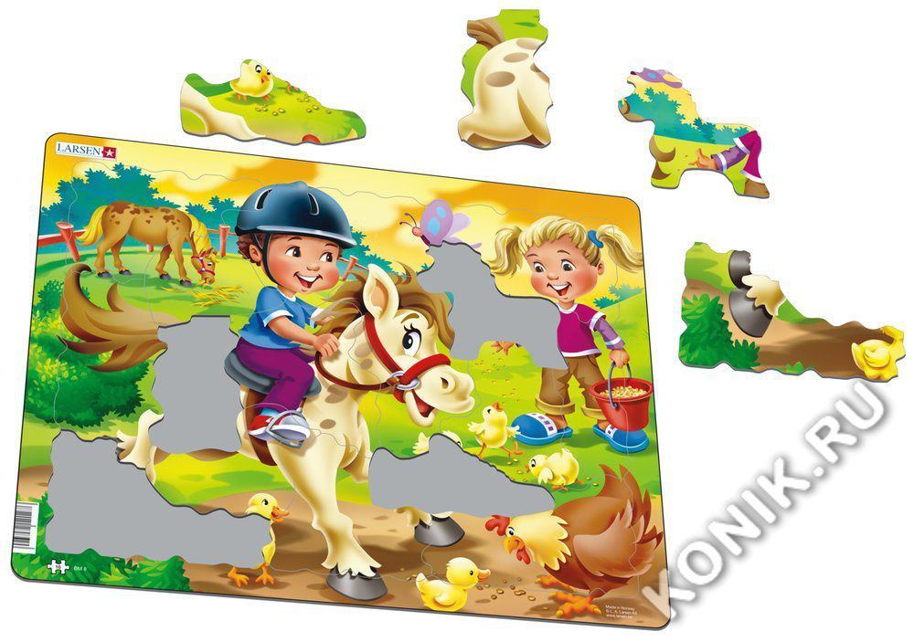 Красочный пазл от норвежского бренда Larsen расскажет малышу об увлекательной жизни на ферме. На готовом изображении представлена девочка, катающаяся на пони, а также множество дополнительных деталей ... Показать описаниеи персонажей, которые делают сборку пазла еще более увлекательным занятием. Пазл Larsen выполнен из прочного многослойного картона, детали удобно брать в ручки и соединять между собой. Игровой пазл можно использовать много раз, собирая и разбирая картинку. Игра с пазлами развивает мелкую моторику рук, внимание, логическое мышление и творческое воображение. В наборе: 16 элементов пазла. Размер собранного поля - 36,5 х 28,5 см.