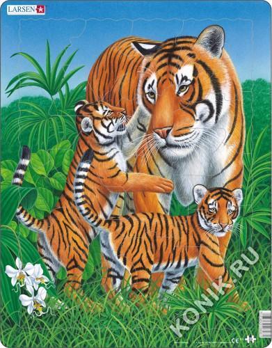Пазлы Ларсен - это яркие обучающие пазлы. Серия Животные знакомит детей с миром природы и дарит много часов приятных занятий вместе с друзьями и родителями. Сделанные из высококачественного трехслойно... Показать описаниего картона, они не деформируются и легко берутся в руки. Все пазлы снабжены специальной подложкой, благодаря чему их удобно собирать. В наборе: 32 элемента пазла. Размер собранного поля - 36,5 х 28,5 см.